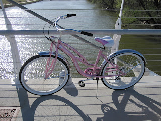 As I mentioned before, all the knitting girls have been getting cruiser bikes and I am such a joiner. So my parents bought me a pink cruiser for my birthday. Isn't it cute? All I need now is a bell and basket.